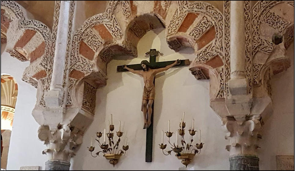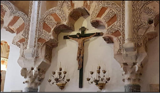 In die Moschee, die weitgehend erhalten wurde, wurde eine katholische Kirche eingebaut. Das Kreuz wurde, wie hier zu sehen, in ein Maurischenbogen der Moschee, positioniert.