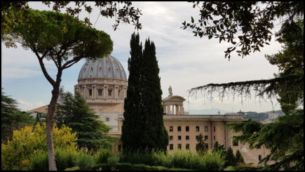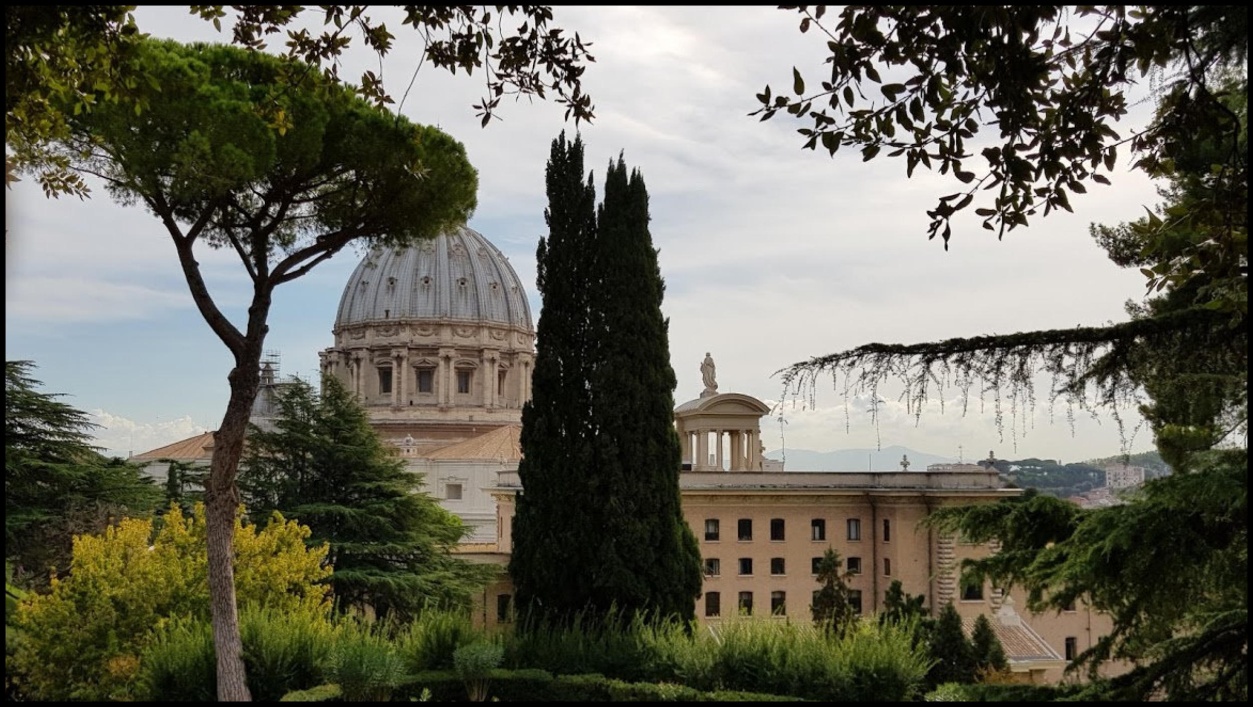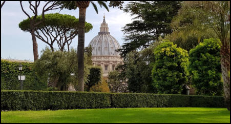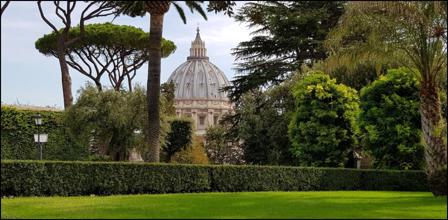 Blick aus dem Vatikanischem Garten auf den Petersdom