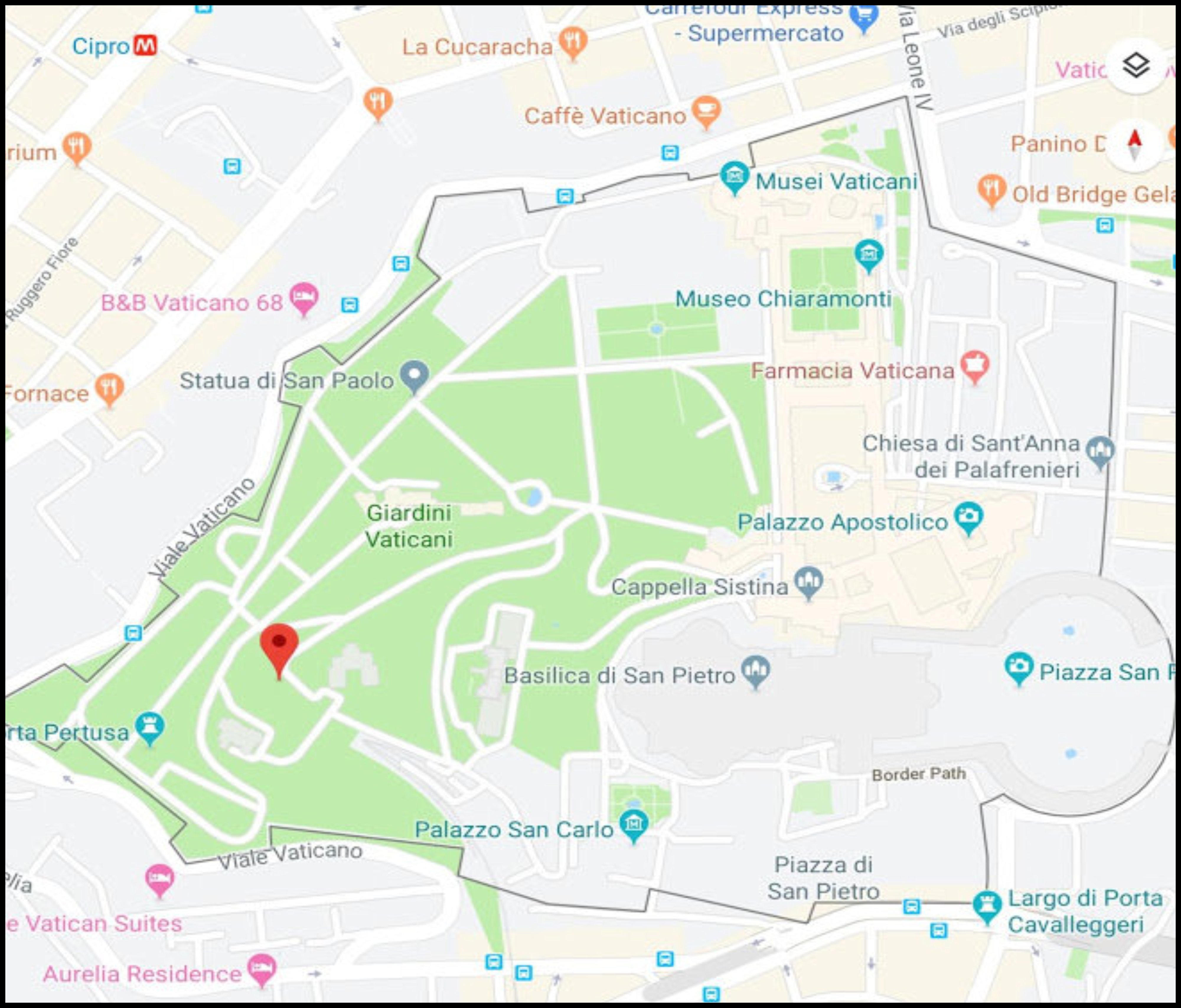 ungefähr die Hälfte des Staatsgebietes der Vatikanstadt aus.